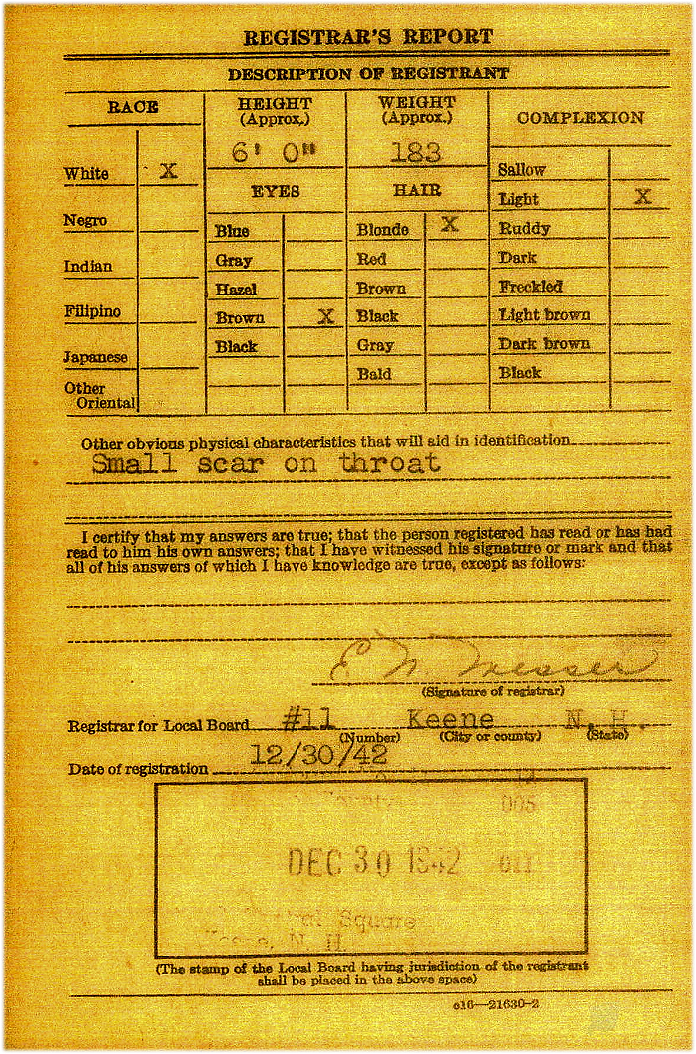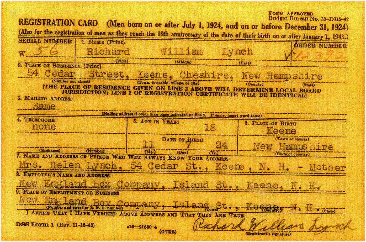 Richard's WWII Military Registration card (side A)